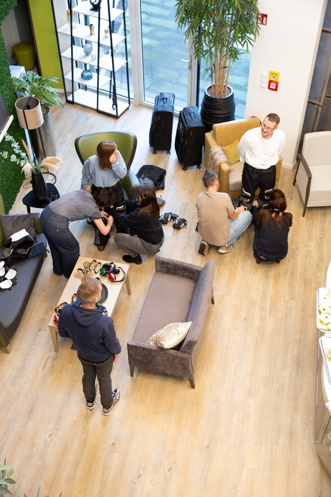 Im Rahmen einer Schulung bei CARELINE drehte sich alles um Alterssimulation, Telepräsenzrobotik und Virtual Reality. Neben theoretischen Grundlagen standen vor allem auch die praktische Erfahrung im Mittelpunkt: In einer Alterssimulation konnten die Mitarbeitenden ihre eigenen Produkte aus Nutzerperspektive erleben und altersbedingte Einschränkungen unmittelbar nachempfinden.